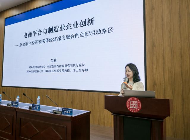 对外经济贸易大学全球创新与治理研究院执行院长、博士生导师吕越教授以“电商平台与制造业企业创新——兼论数字经济和实体经济深度融合的创新驱动路径”为题,深入剖析了电商平台对制造业企业创新的促进作用。她基于党的二十大精神,结合数字经济高速发展的背景,从市场规模扩大、知识溢出等角度,构建了企业创新测度指标,并通过实证研究揭示了电商平台对制造业企业创新的显著影响。吕越教授的报告为理解数字经济与实体经济融合的创新路径提供了新视角。