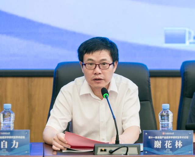 紧接着,江西财经大学副校长、应用经济学院(数字经济学院)院长谢花林教授致辞。谢花林副校长首先对与会嘉宾的莅临表示热烈欢迎,并详细介绍了江西财经大学及应用经济学院(数字经济学院)的发展历程与成就。他强调,学校紧跟应用经济学科发展趋势,成立了应用经济学院(数字经济学院),其中产业经济学作为重点培育学科,拥有深厚的学术积淀与广阔的发展前景。学院师生在知名期刊上发表了大量学术论文,并承担了多项国家自然科学基金项目及重点课题,学术成果斐然。最后,谢花林副校长预祝本次学术论坛圆满成功,期待与会者共谋产业发展新篇章。