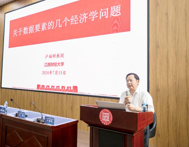 江西财经大学原党委书记、博士生导师卢福财教授则以“关于数据要素的几个经济学问题”为题,围绕数据作为生产要素的经济学议题展开了深入探讨。他基于党的十九届六中全会精神,特别以《决定》中首次增列“数据”作为生产要素为背景,解析了数据要素的概念、特征及其对经济增长的作用,并详细阐述了数据采集、标注、资本化及要素市场等关键环节。卢福财教授的报告为数据要素的经济价值挖掘与利用提供了理论支撑。